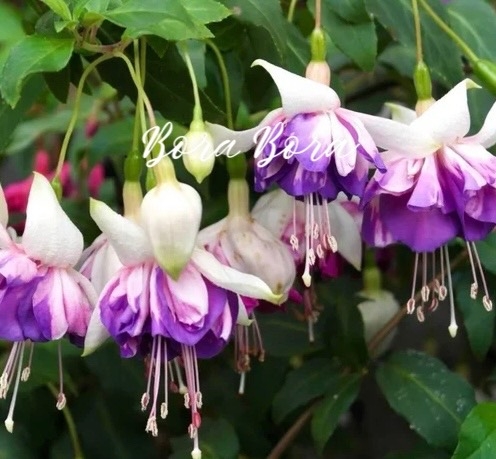 Полуампельный сорт с крупными махровыми цветами. Чашелистики белые.